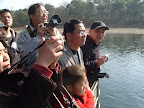 船上的导游。正在讲解九马画山。说这座山看出九匹马就是状元,看出七匹马是榜眼云云。传说周恩来看出九匹,陈毅数出七匹之类。反正我的想象力比较差,基本也就只能勉强算看出导游讲解的三匹……